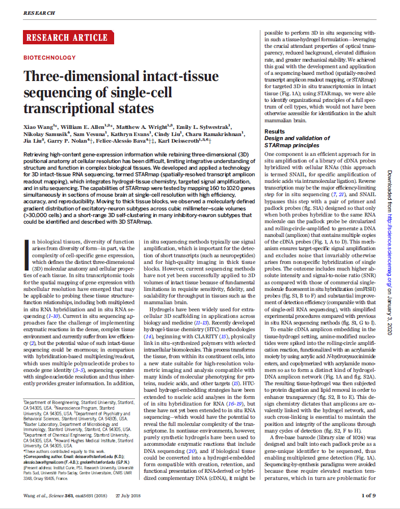 Publication | Three-dimensional intact-tissue sequencing of single-cell transcriptional states
